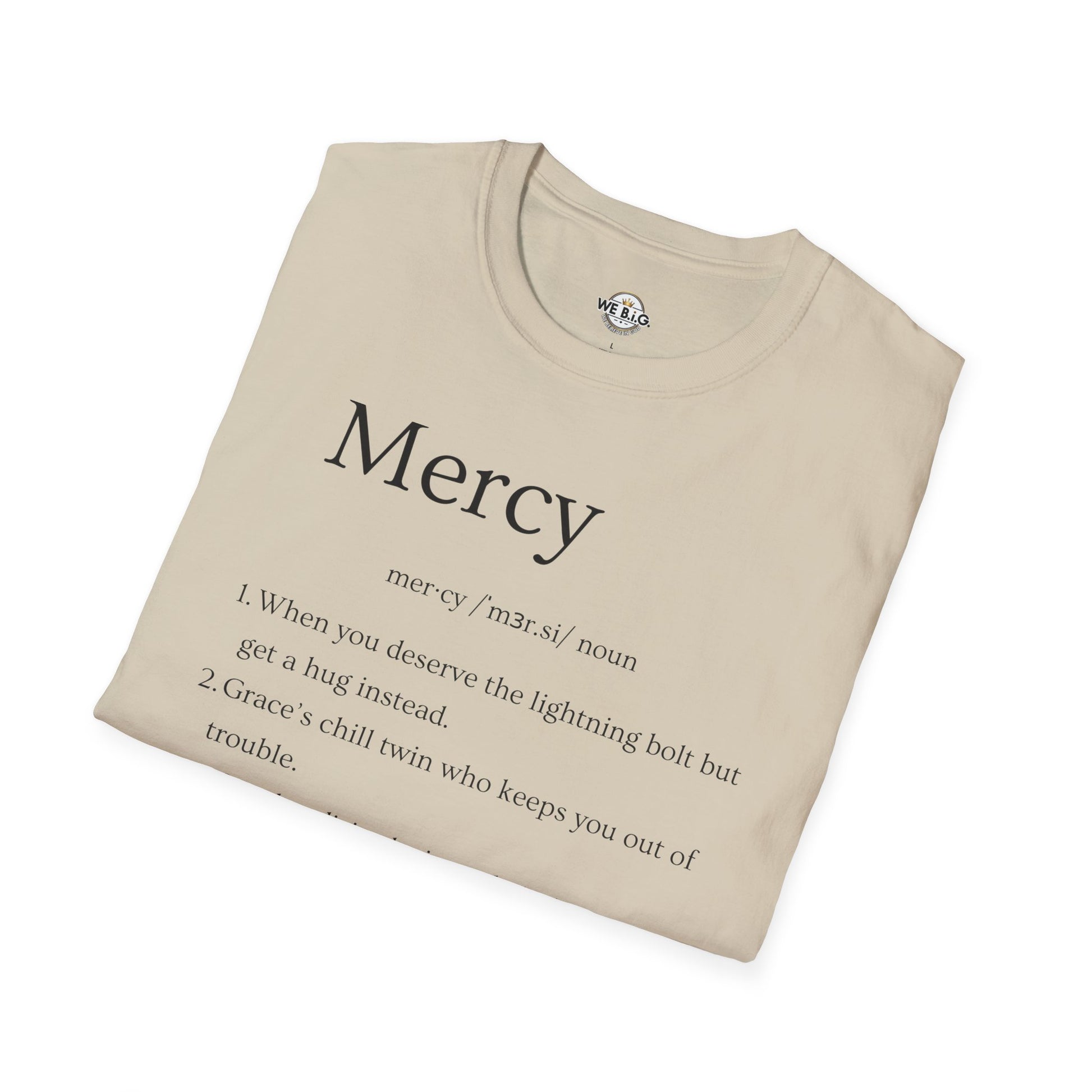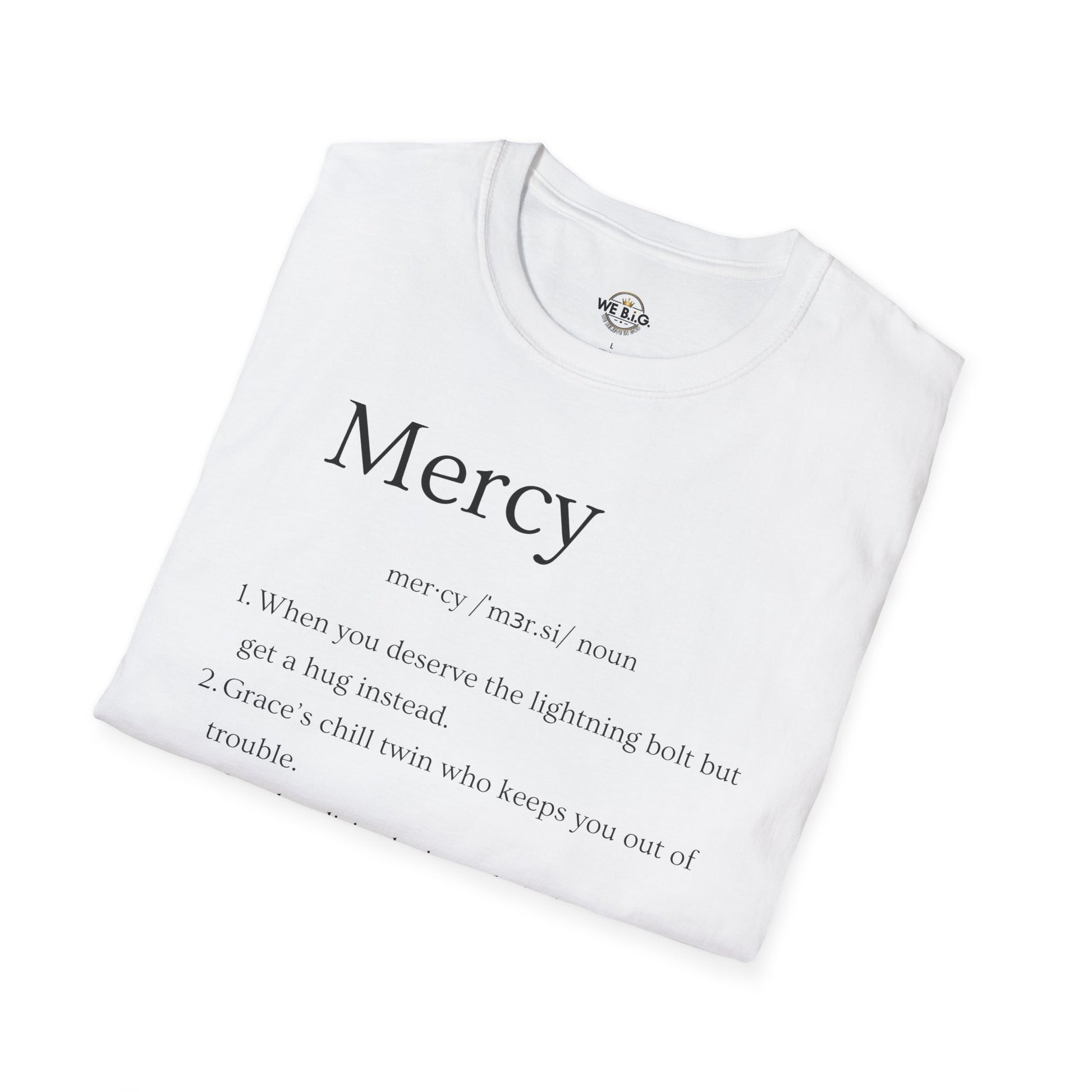 Mercy Definition—Inspirational Unisex T-Shirt - 'Mercy' & 'We B.I.G.' Quotes, Perfect for Faith, Motivation, and Casual Wear